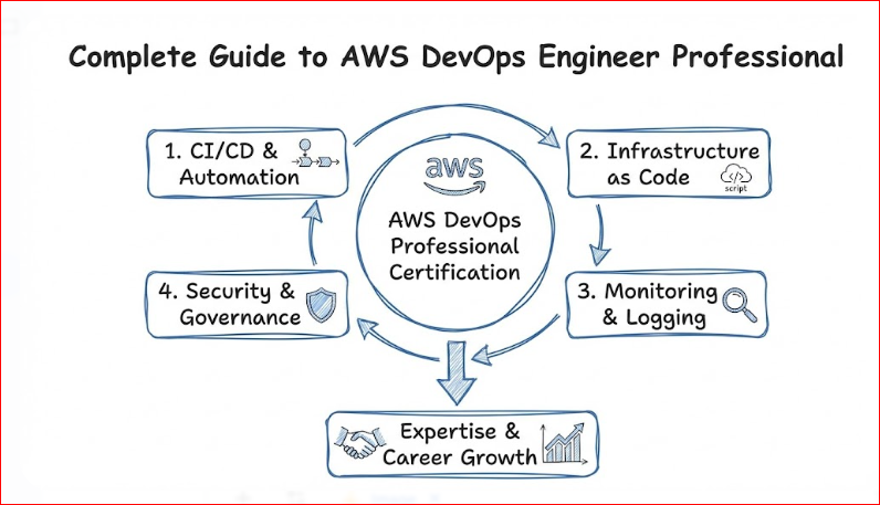 AWS DevOps Engineer – Professional is an advanced certification for engineers and managers who build, deploy, and run applications on AWS in real production environments, and it focuses on creating reliable delivery systems through automation rather than manual processes. It validates your ability to design and manage CI/CD pipelines, implement safe deployment strategies, automate governance and security controls, and build strong monitoring and incident response workflows so releases stay fast and stable. Instead of testing only AWS services, it checks end-to-end ownership—how you plan for failures, improve availability, reduce operational effort, and keep systems scalable and compliant. This guide will help you understand what the certification covers, who it is for, what skills and projects it enables, how to prepare with clear timelines, and what to learn next to grow your career.