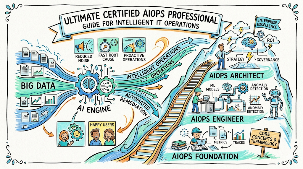 The Certified AIOps Professional is a comprehensive validation of an engineer’s ability to apply machine learning and data science techniques to IT operational data. It represents a shift away from traditional rule-based monitoring toward intelligent, predictive systems that can identify issues before they impact the end user. This certification exists because modern distributed systems generate a volume of logs, metrics, and traces that far exceed human cognitive capacity. By focusing on real-world, production-focused learning, the program ensures that candidates are not just learning theoretical algorithms but are mastering the practical implementation of AI within modern engineering workflows. It aligns perfectly with enterprise practices that demand higher uptime, faster incident response, and reduced operational overhead.